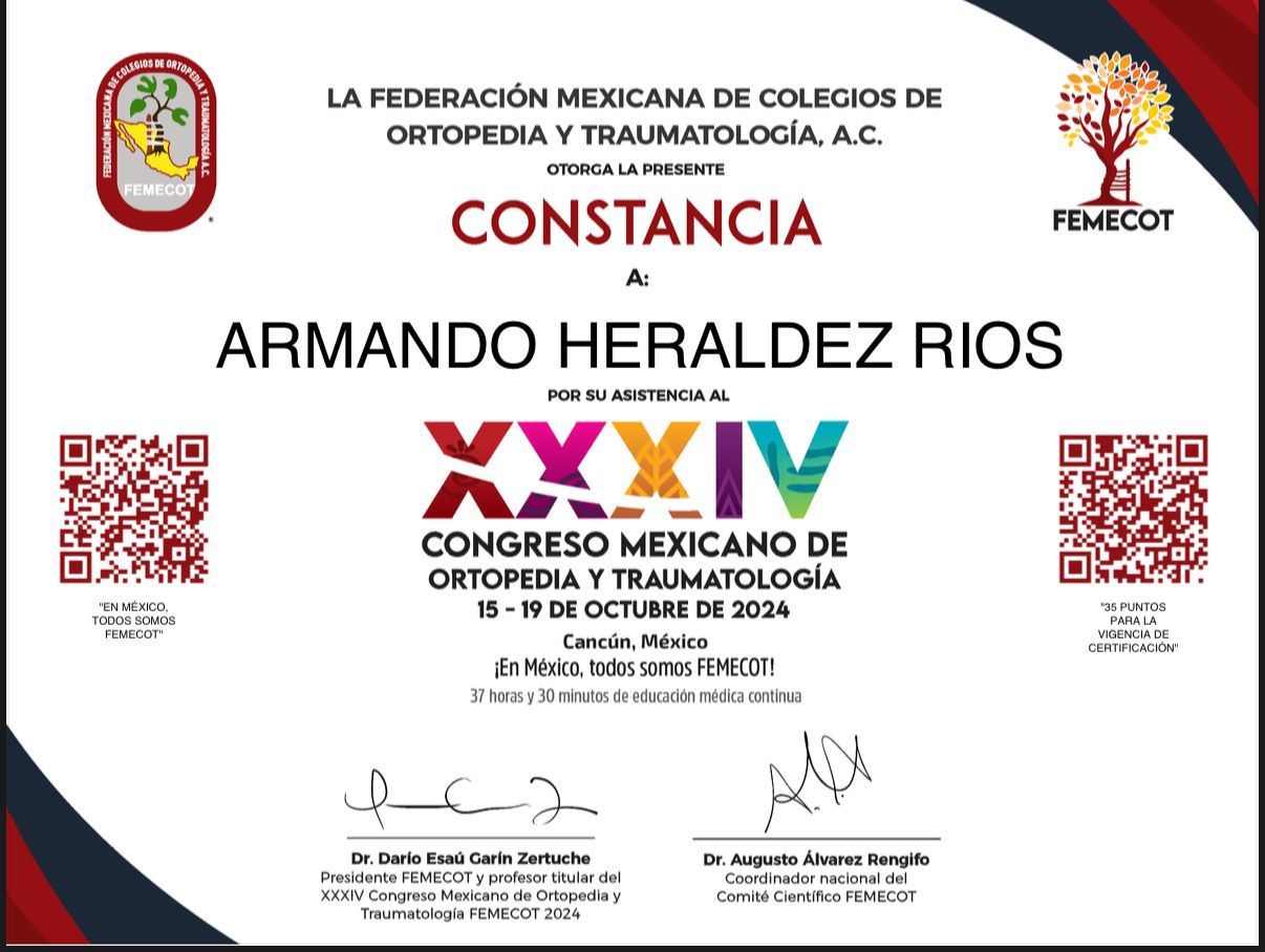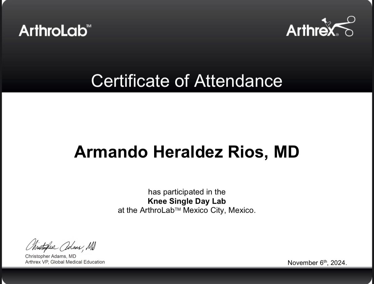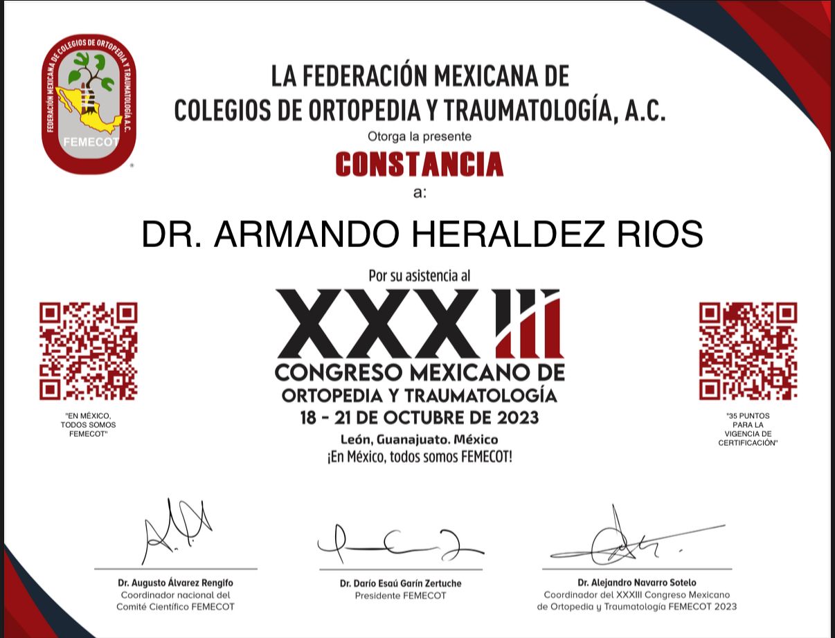 Soy el Dr. Armando Heraldez Ríos, Médico Ortopedista y Traumatólogo en la ciudad de Mexicali. Certificado por el consejo mexicano de ortopedia y traumatología Mi vocación es ayudar a mis pacientes a recuperar su movilidad, aliviar su dolor y mejorar su calidad de vida. Cuento con amplia experiencia en artroscopia de rodilla, prótesis de cadera, prótesis de rodilla , fracturas , lesiones deportivas. Brindo tratamientos personalizados para lograr una rehabilitación segura y efectiva. Cada paciente es único, por eso mi compromiso es escuchar, explicar con claridad y acompañar en cada paso del proceso, desde el diagnóstico hasta la recuperación. Mi objetivo es que vuelvas a hacer lo que amas: caminar, moverte, disfrutar de tus actividades y sentirte libre nuevamente. En mi consulta encontrarás trato humano, atención de calidad y soluciones médicas respaldadas por la más alta preparación profesional. Porque tu salud y tu movilidad son mi prioridad, trabajaré contigo para que no solo recuperes movimiento, sino también tu calidad de vida